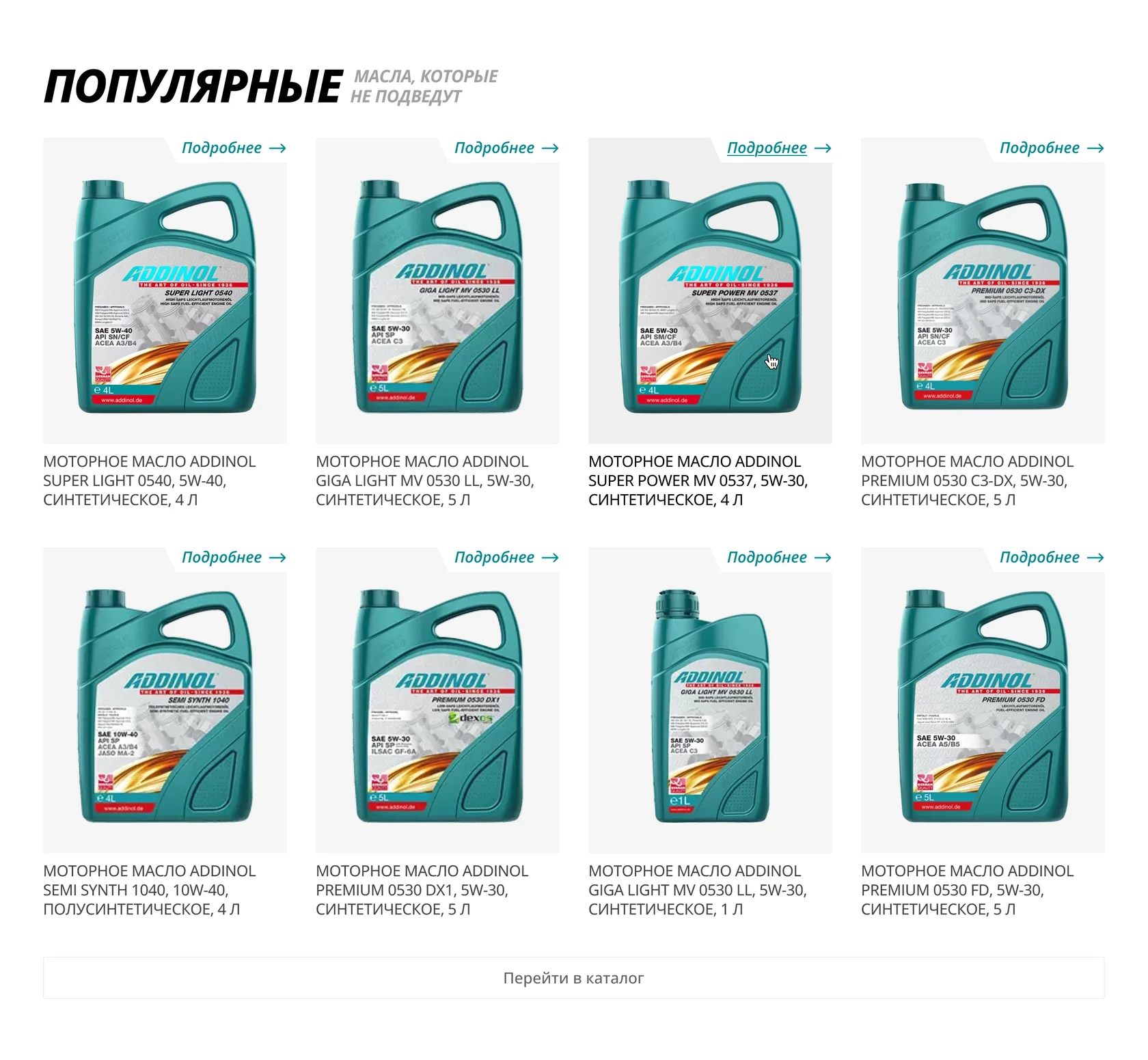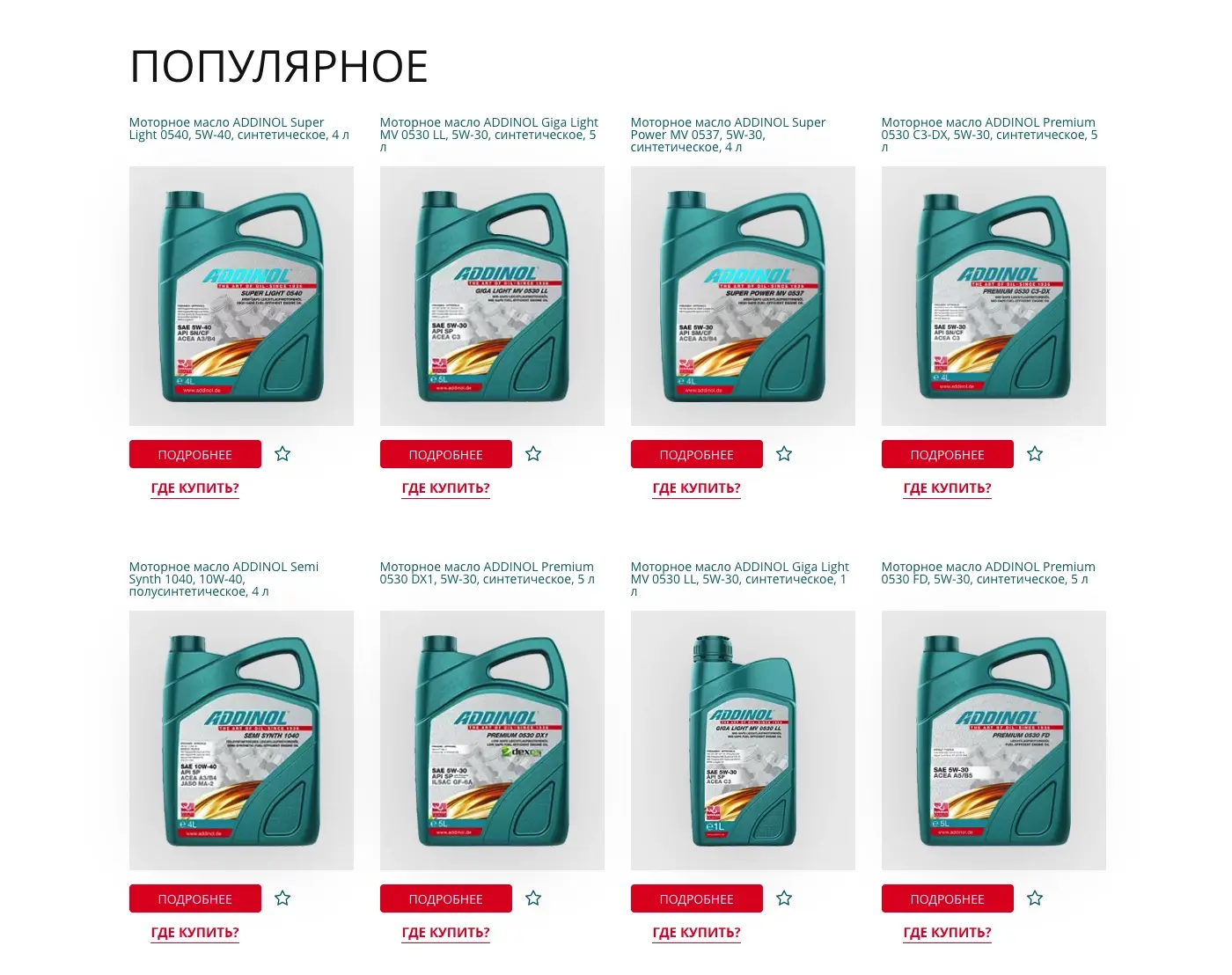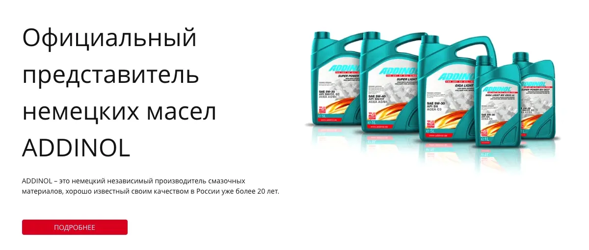 ADDINOL24 — интернет-магазин моторных масел с уже существующим сайтом и рабочей структурой.