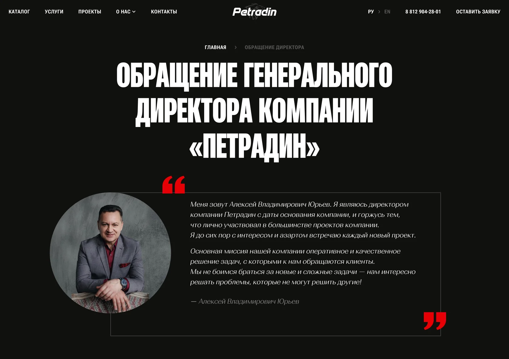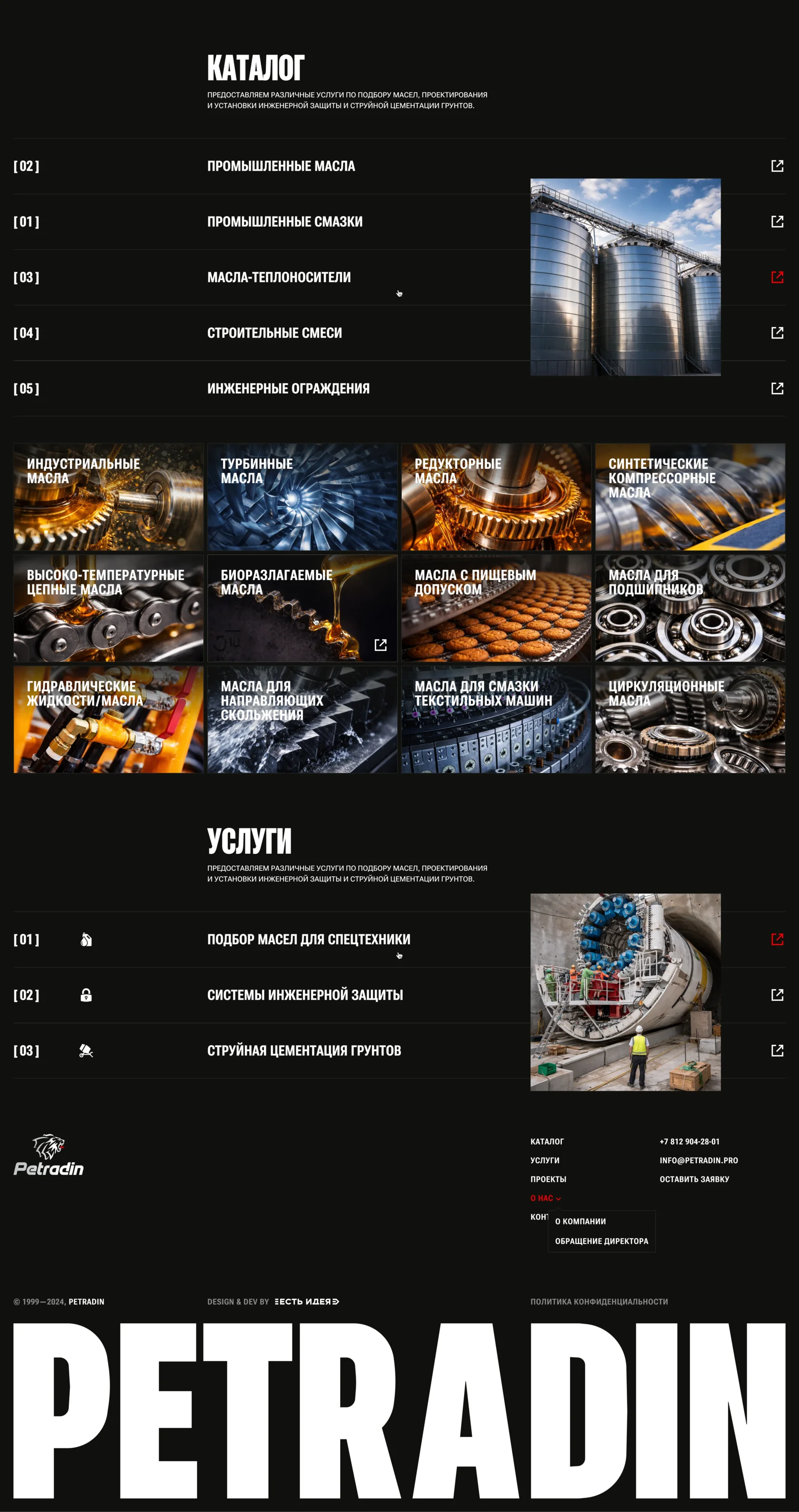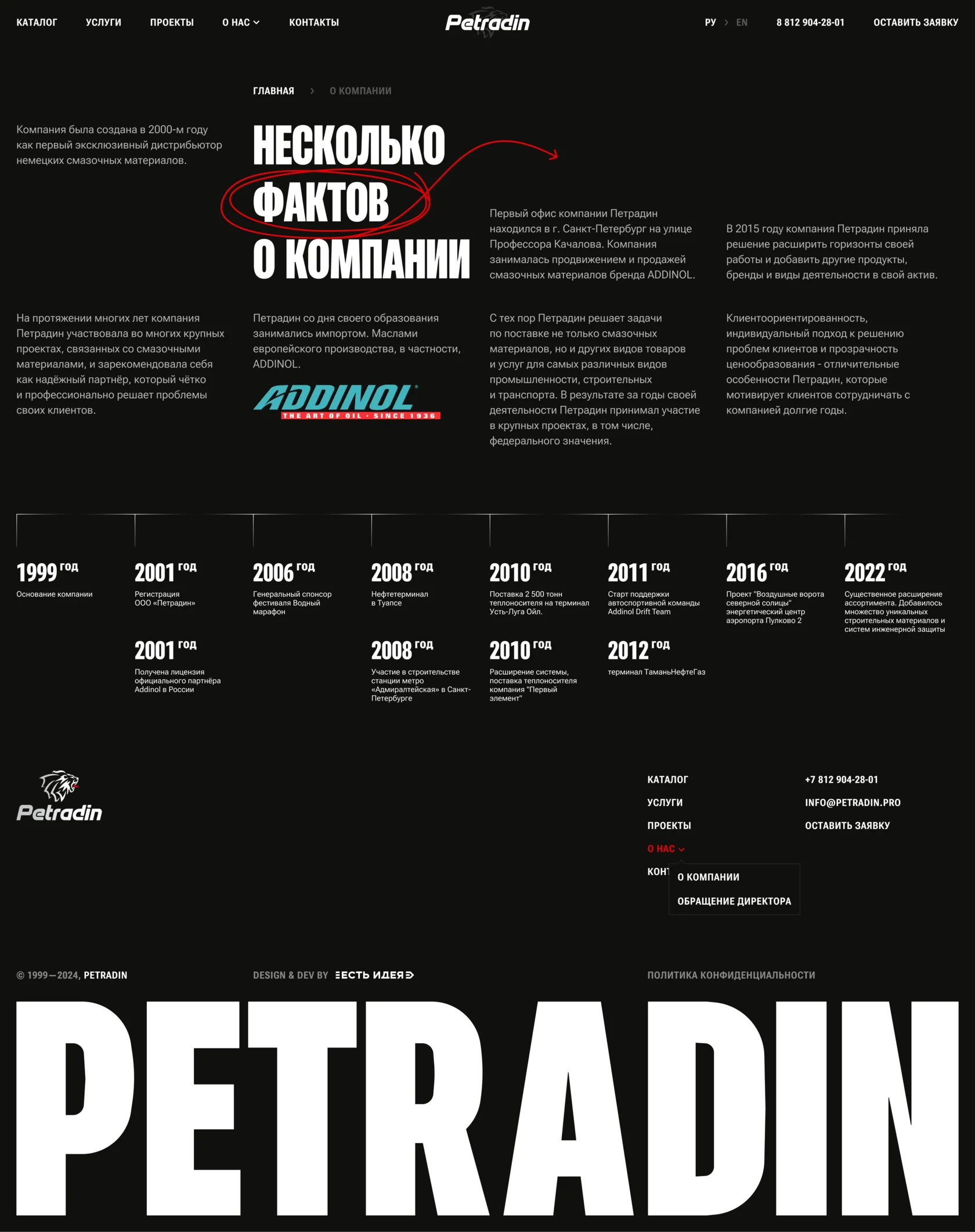 Проект Petradin создавался с нуля на основе уже существующего брендинга.