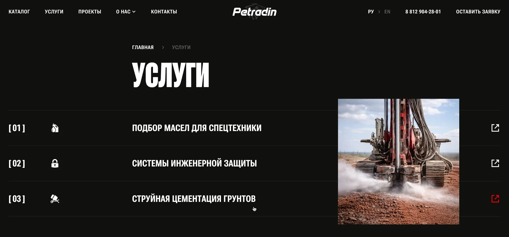 Спроектировать и разработать сайт для Petradin с нуля, адаптировав существующий брендинг в полноценную цифровую систему.