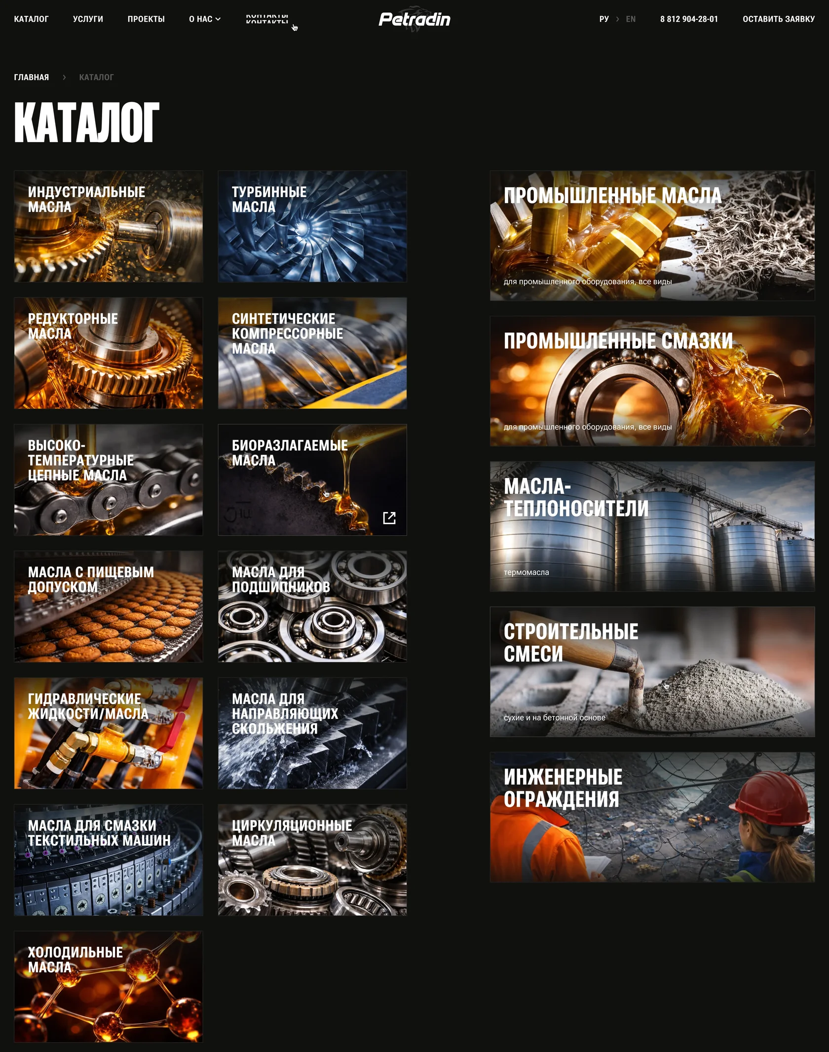 Каталог построен как наглядная система категорий без лишних уровней вложенности. Пользователь сразу видит весь спектр продукции и быстро переходит к нужному разделу.